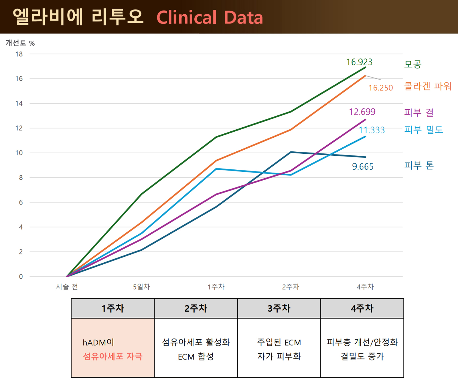 리투오는 다른 스킨부스터보다 효과가 빨리 나타나며, 4~8주차까지 꾸준히 더 좋아지고, 이후에는 효과가 유지됩니다.